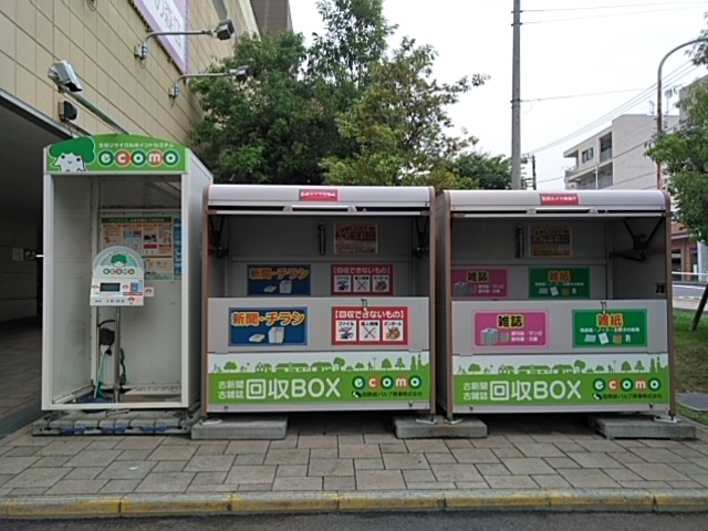 当社グループでは、古紙を受け入れることができる、古紙回収BOX「タウンECOMO」を設置しております。お買い物ついでに家庭の古紙を、いつでもお持込いただくことが可能です。(持込古紙の重量に応じてWAONポイントを付与します)